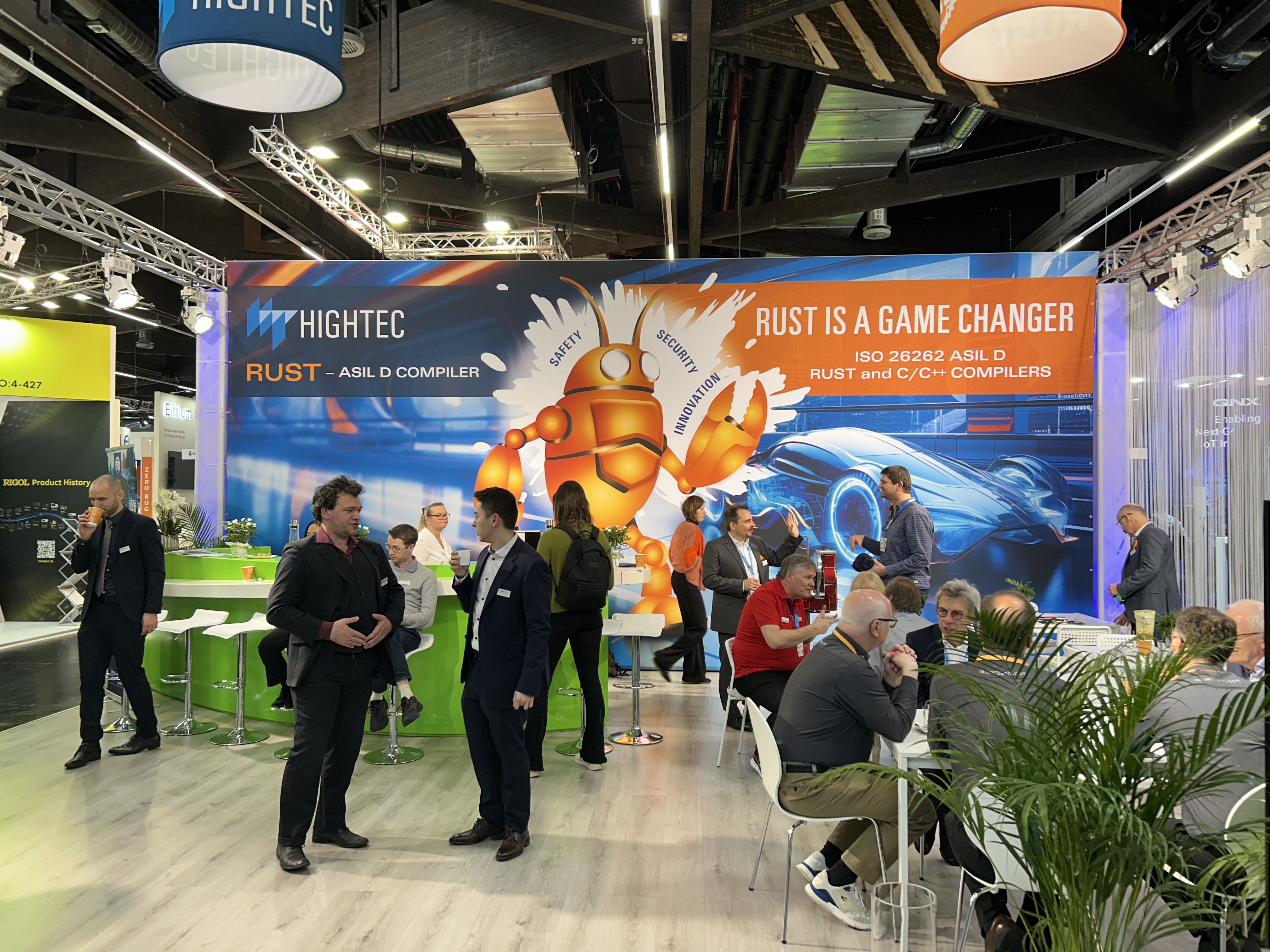 This year, Rust seems to have broken through in the embedded community. Nowhere was it more evident than at the Hightec2 booth. For those of you who are not familiar with Hightec, they sell qualified builds of open source compilers (e.g. GCC) for safety critical industries such as automotive. This year, they had a HUGE crab-inspired mascot in the background of their booth to announce the availability of their ASIL D qualified Rust compiler. I’m excited to see serious ecosystem players like Hightec make such a huge bet on Rust, as I believe it is a better language and runtime for the embedded world.