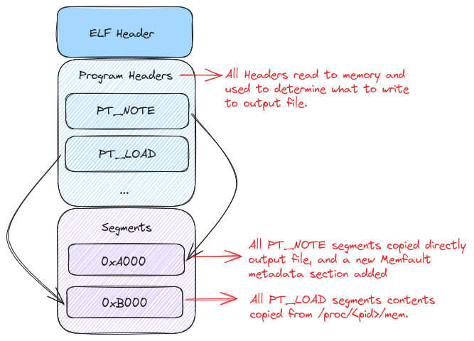 PT_LOAD segment in the coredump. Instead of storing this in memory, we’ll